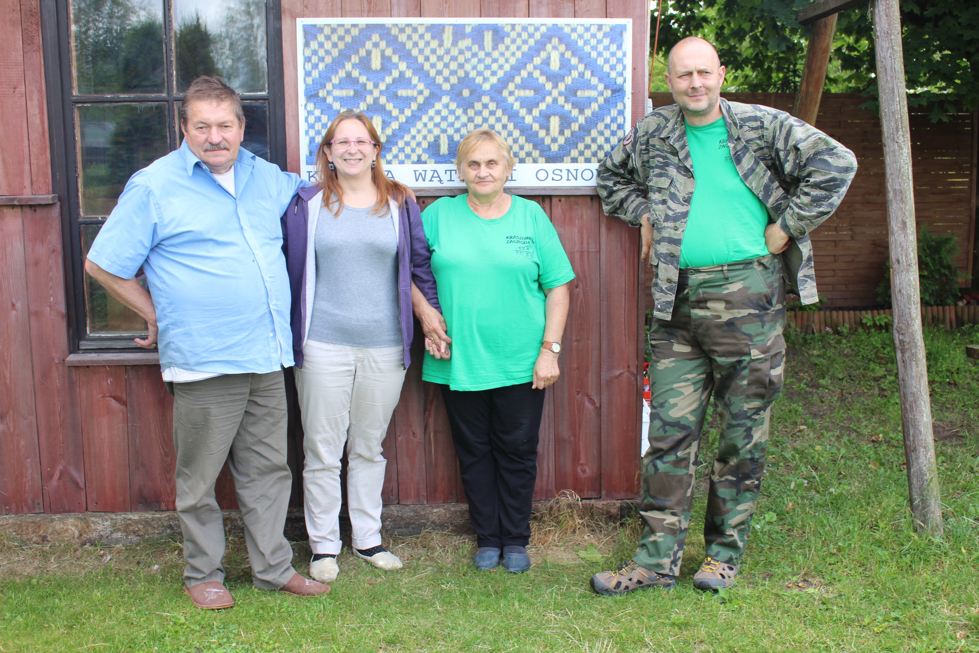 Również w okolicy Suwałk, we wsi Nowinka mieszkają SABINA i JAN KNOCH, najwyższych lotów rzemieślnicy: ona - utytułowana tkaczka i mistrzyni tkaniny dwuosnowowej, on – cieśla. Jan wybudował na nasze życzenie krosna, które stoją w Zagrodzie, a Sabina zadbała o nasz rozwój w niesamowitym świecie tkactwa, który to rozpoczęliśmy od kursu tkackiego w Suwalskim Ośrodku Kultury pod kierownictwem Sabiny, a potem już były konsultacje prywatne i długie rozmowy, w których wątek i osnowa bezustannie się ze sobą przeplatały.