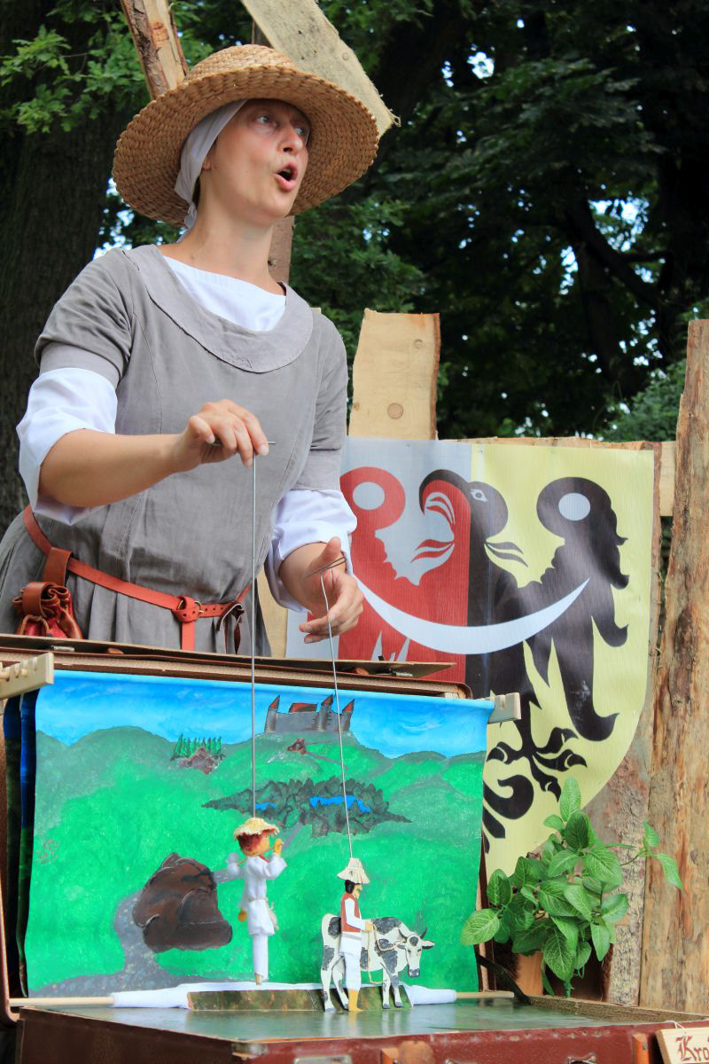 Agnieszka Klak podczas przedstawienia lalkowego pt.: "O Maćku - żaku ubogim", 2019